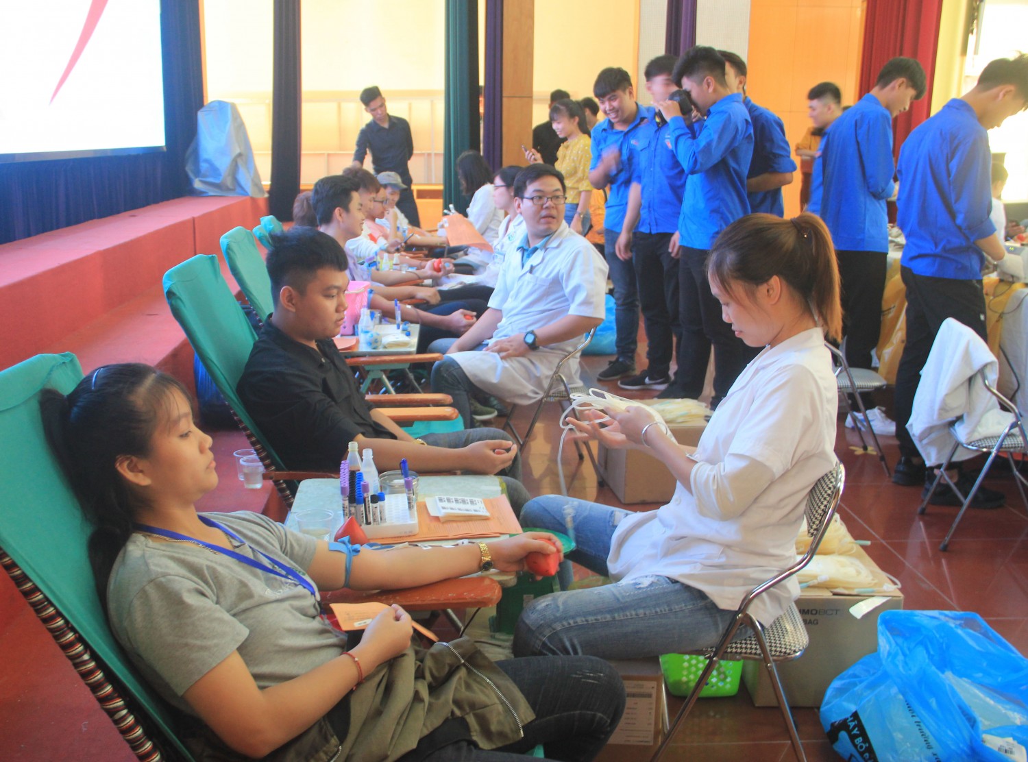 Sinh viên nhà trường tham gia hiến máu