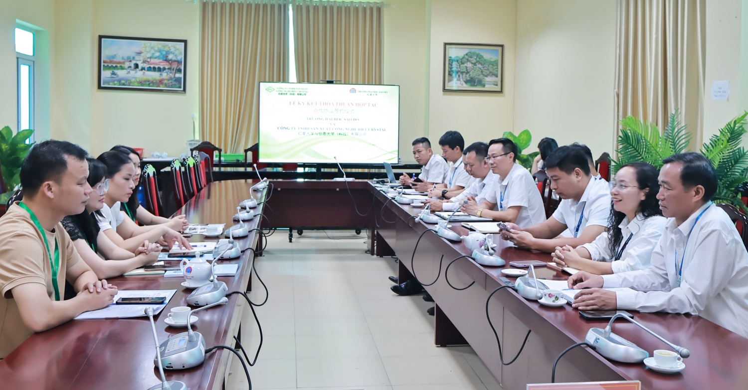 Ngày 12/6/2025, đại diện lãnh đạo Trường Đại học Sao Đỏ đã có buổi làm việc với lãnh đạo Công ty TNHH sản xuất công nghệ Biel Crystal.