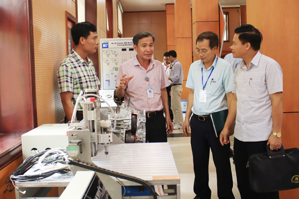 NGND. TS Đinh Văn Nhượng - Hiệu trưởng và các đại biểu tham quan các sản phẩm