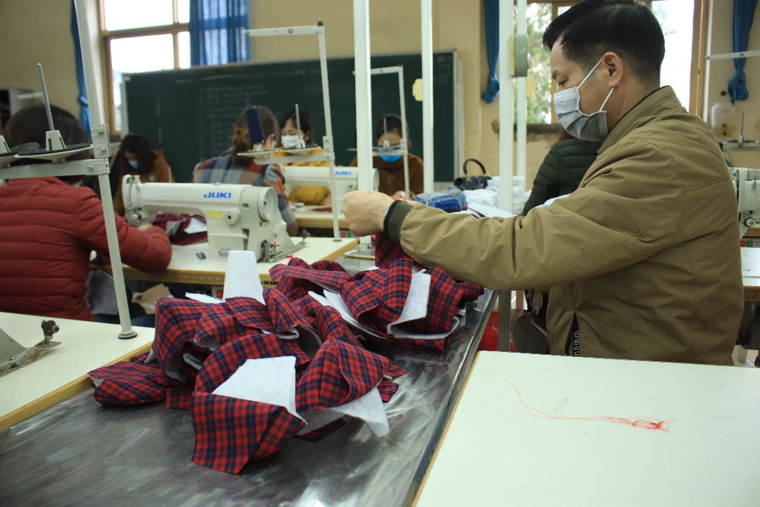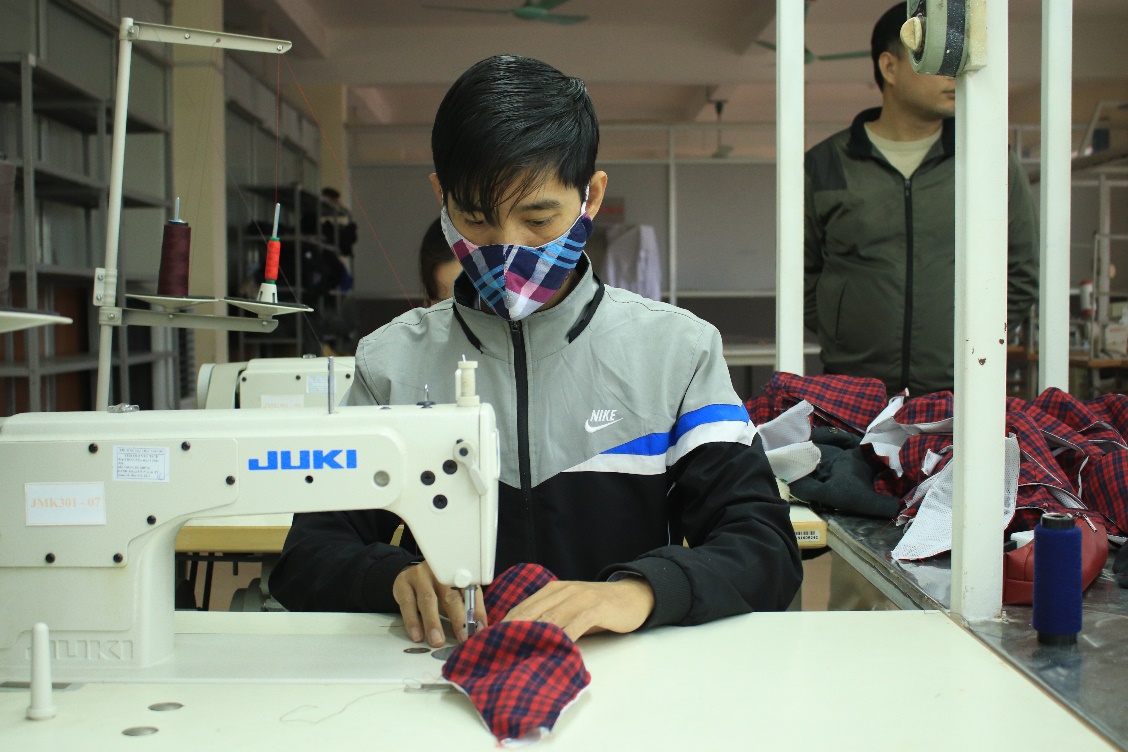 Cán bộ, giảng viên Trường Đại học Sao Đỏ tích cực may, sản xuất khẩu trang vải