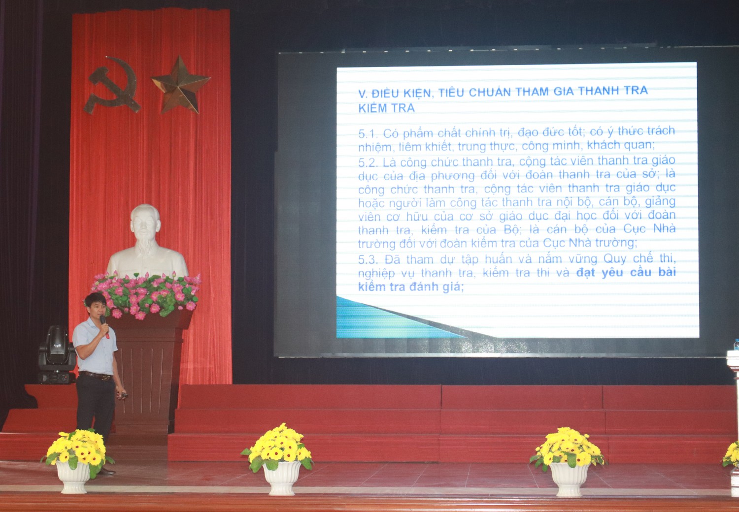 Phát biểu tại buổi tập huấn NGND. TS Đinh Văn Nhượng và TS. Nguyễn Thị Kim Nguyên đã khẳng định đây là nhiệm vụ có ý nghĩa quan trọng góp phần đảm bảo cho kỳ thi tốt nghiệp THPT diễn ra nghiêm túc, khách quan, đúng quy định. Vì vậy, cán bộ, giảng viên tham gia thanh tra, kiểm tra phải nghiên cứu kỹ các quy chế, thông tư, văn bản hướng dẫn… để góp phần tổ chức kỳ thi tốt nghiệp THPT năm 2021 an toàn, hiệu quả.