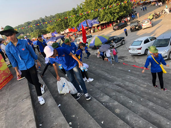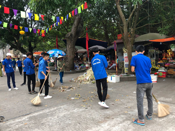 Sinh viên tình nguyện Trường Đại học Sao Đỏ tổ chức vệ sinh môi trường tại Lễ hội mùa thu Côn Sơn – Kiếp Bạc