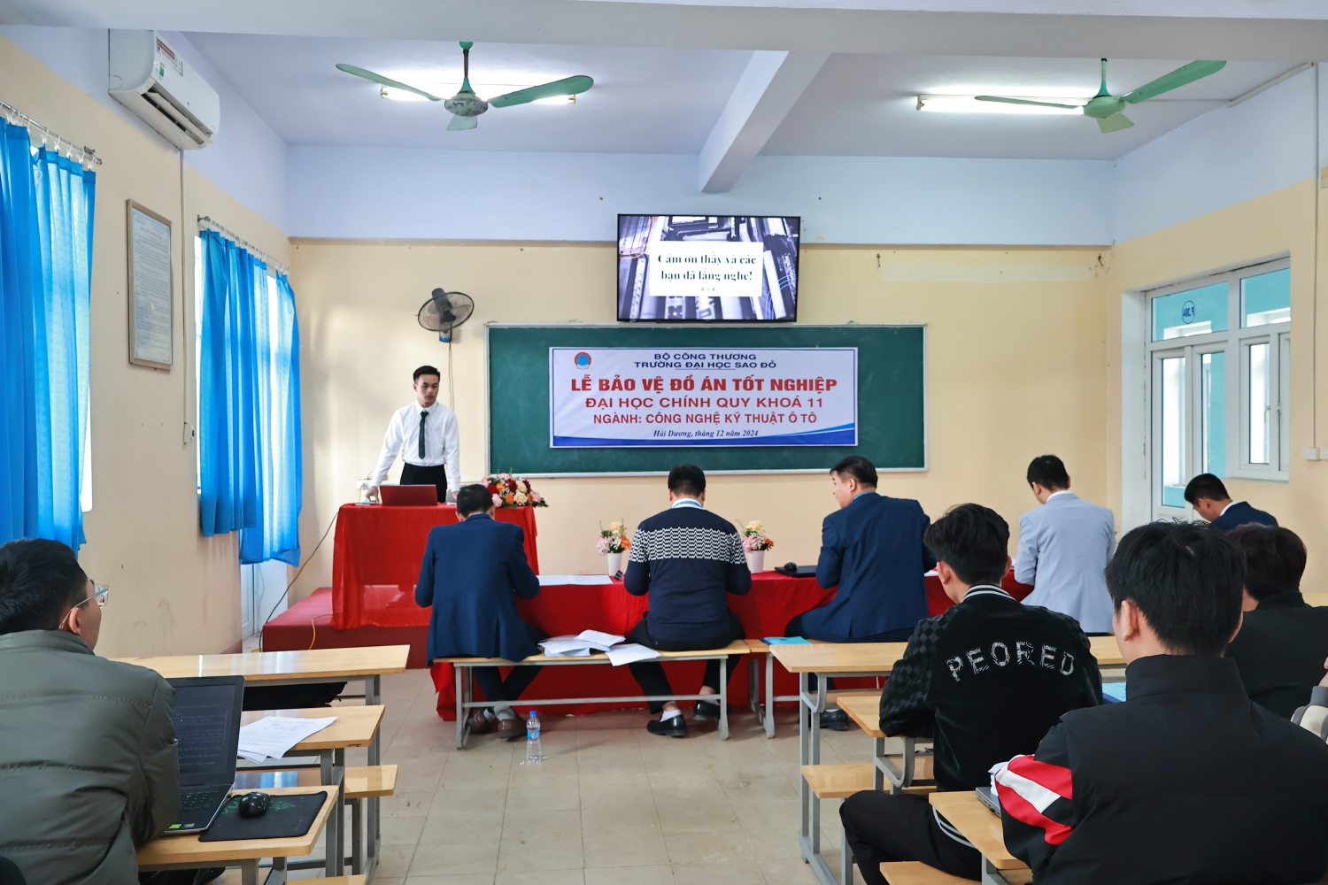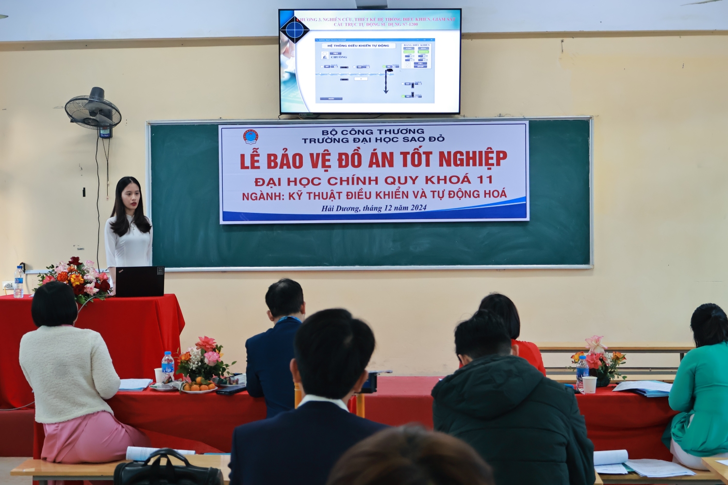 Từ ngày 18/12 đến ngày 22/12/2024, Trường Đại học Sao Đỏ tổ chức Lễ bảo vệ đồ án tốt nghiệp cho sinh viên Đại học chính quy khóa 11, chương trình đào tạo trình độ đại học cấp bằng kỹ sư (khóa học 2020-2025).