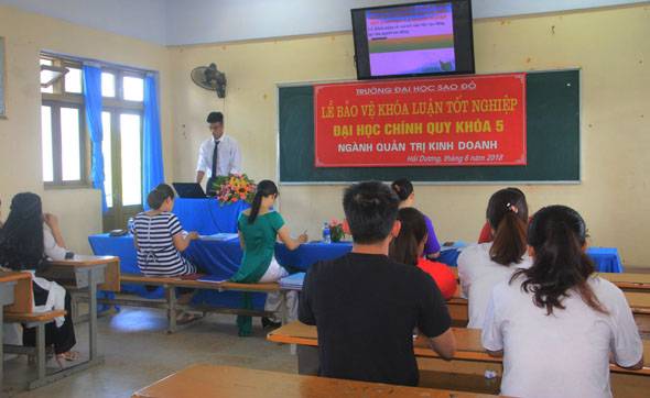 Từ ngày 8/6 đến ngày 11/6/2018, Trường Đại học Sao Đỏ tổ chức Lễ bảo vệ khóa luận, đồ án tốt nghiệp cho sinh viên Đại học chính quy khóa 5. Tại 24 hội đồng, 290 sinh viên đã bước vào đợt bảo vệ khóa luận và đồ án tốt nghiệp của mình ở các ngành: Quản trị kinh doanh; Kế toán; Tài chính ngân hàng; Công nghệ kỹ thuật ô tô, Công nghệ kỹ thuật điện tử truyền thông; Công nghệ thông tin; Công nghệ kỹ thuật cơ khí; Công nghệ thực phẩm; Công nghệ kỹ thuật hóa học; Công nghệ kỹ thuật điện, điện tử; Công nghệ may; Ngôn ngữ Anh, ngôn ngữ Trung Quốc, Việt Nam học.