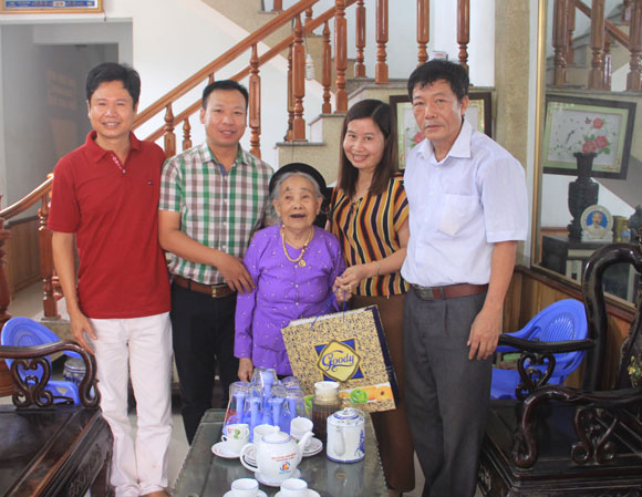 T.S Nguyễn Thị Kim Nguyên – Phó Hiệu trưởng cùng đại diện BCH Công đoàn trường, Bí thư Đoàn TNCS Hồ Chí Minh nhà trường thăm và tặng quà Mẹ Việt Nam anh hùng Nguyễn Thị Thu