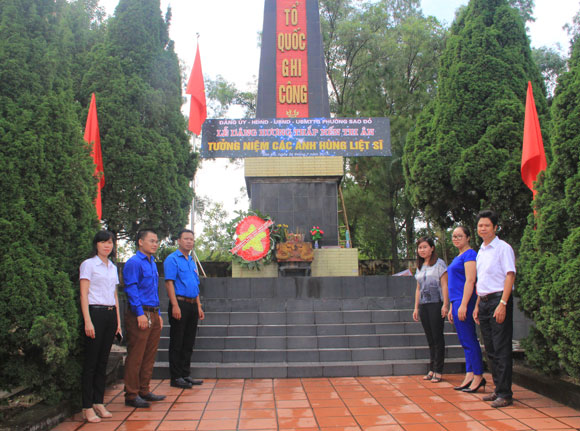 TS. Nguyễn Thị Kim Nguyên - Phó hiệu trưởng nhà trường cùng các tổ chức đoàn thể dâng hương, đặt vòng hoa tưởng niệm các anh hùng liệt sĩ tại nghĩa trang liệt sỹ phường Sao Đỏ